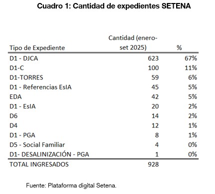 Cantidad de Expedientes Ingresados a la SETENA en enero-setiembre 2025